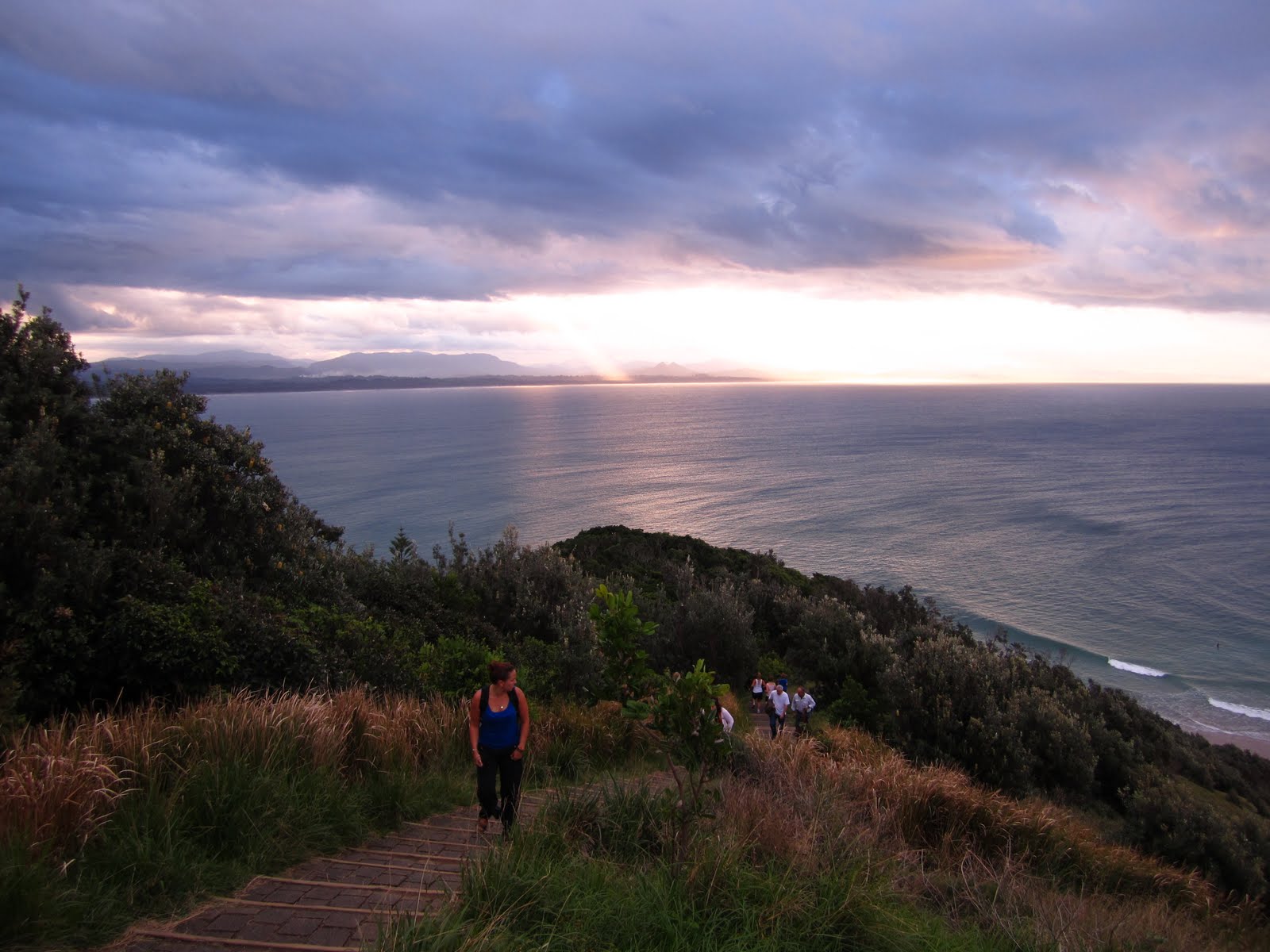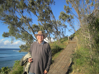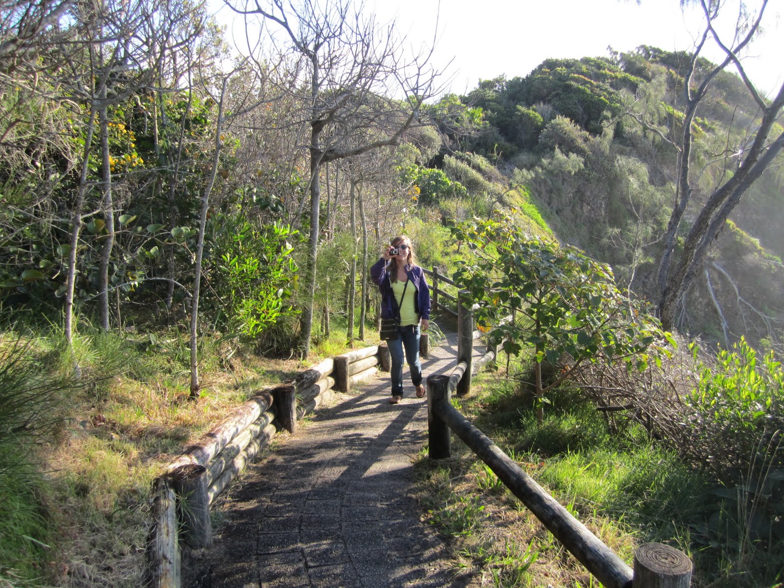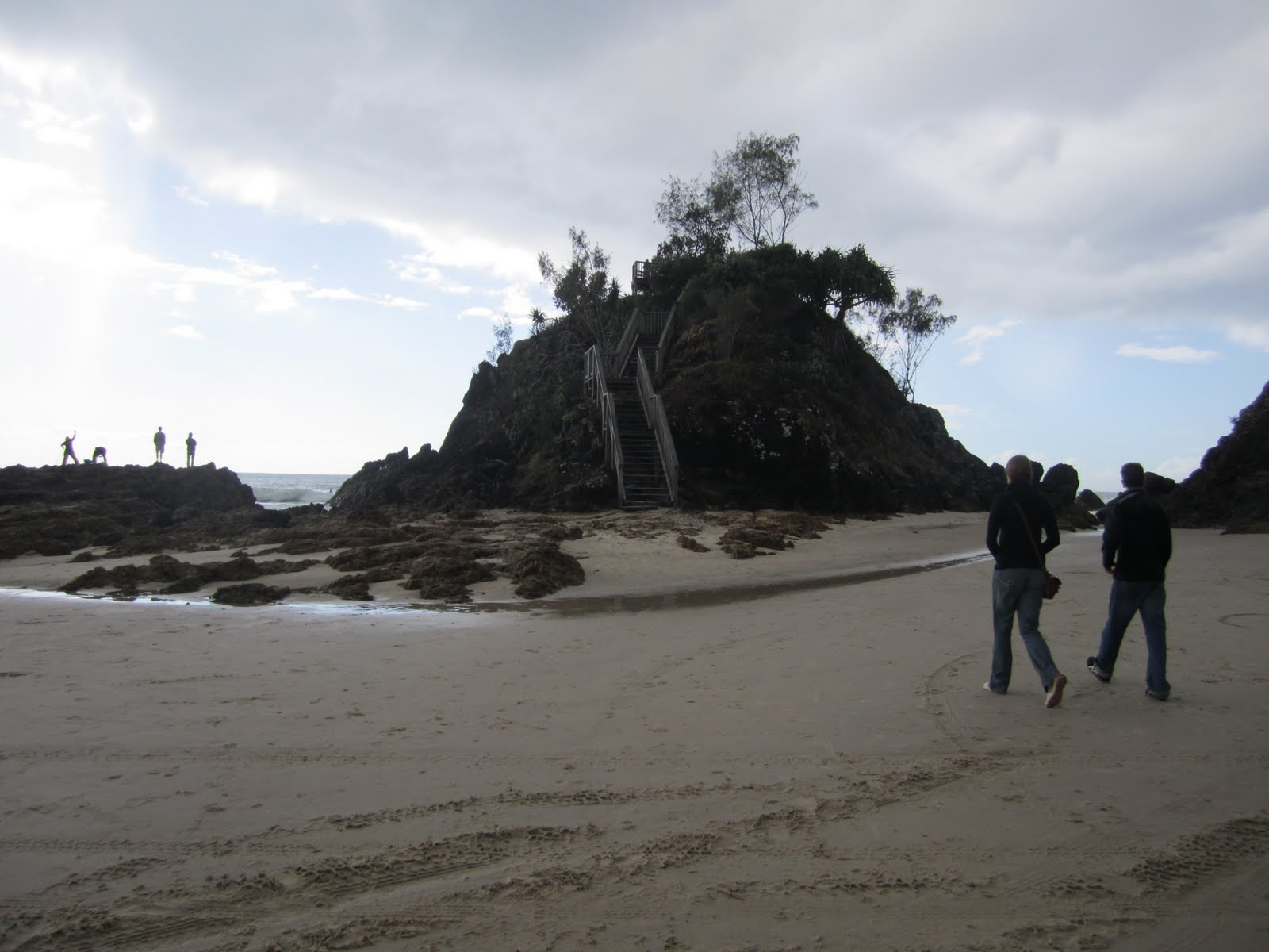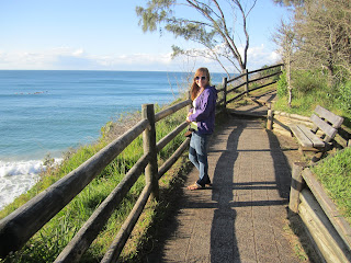 Later that night (7:30) we caught the shuttle from Brisbane to Byron Bay arriving just after 9:30...I was going to drive, but I am so glad I didn't. It was about 2 hours south of Brisbane. Emily brought along her friend Manika. We stayed at Byron Central Apartments, which were very central, very clean, and quite economical. I wasn't quite up to staying at a hostel. The temperature rose to mid seventies and was quite pleasant I thought the ocean felt like bath water, but no one was swimming. It was winter remember!