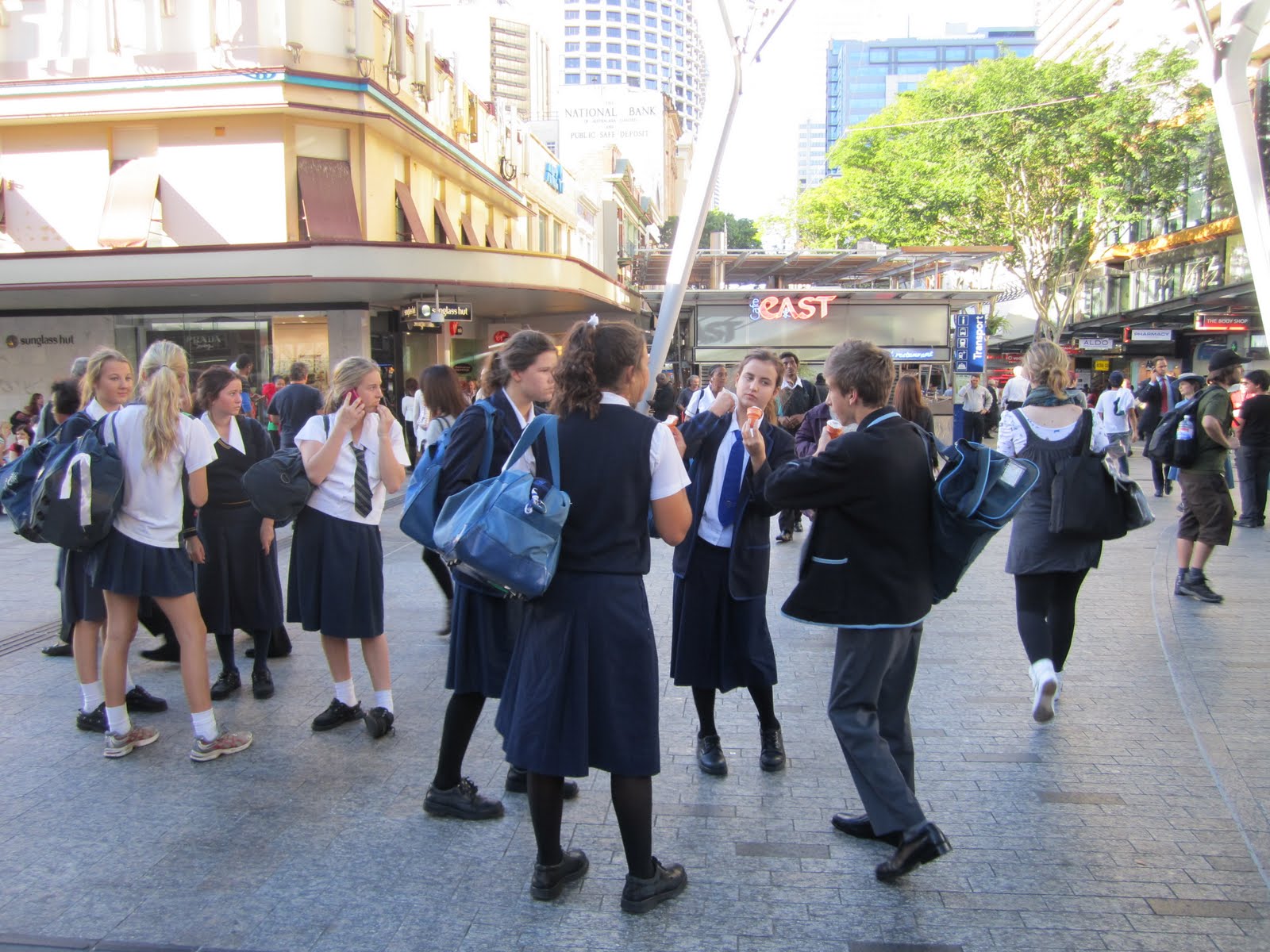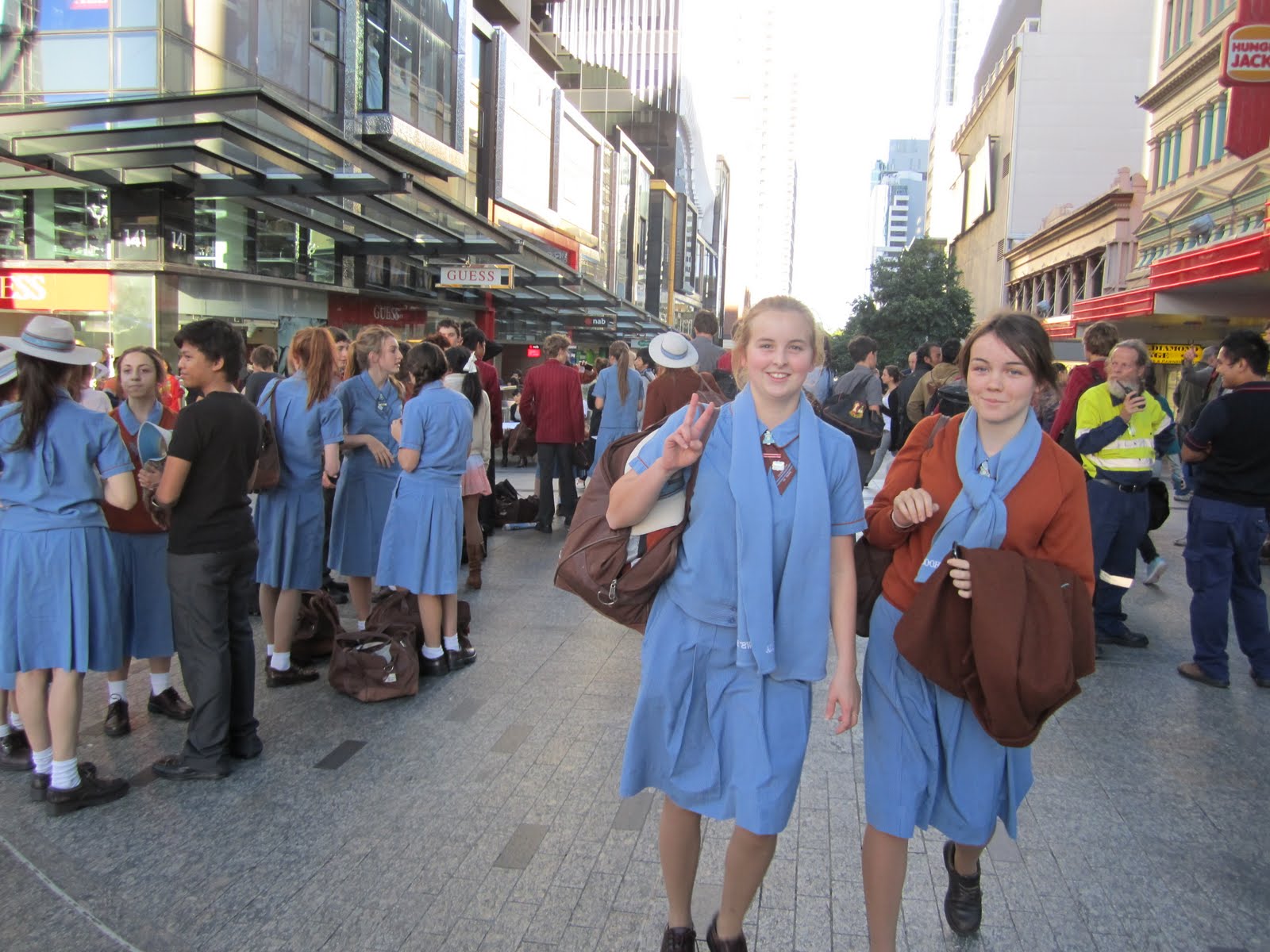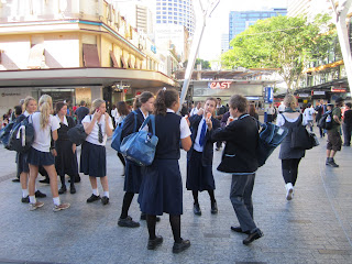 We take the bus to Brisbane and get out down town. What a clean city! The school kids are just out of school in their uniforms. I tell Emily that it feels like I am at Hogwarts as there are many different schools, each with their different uniform styles.
