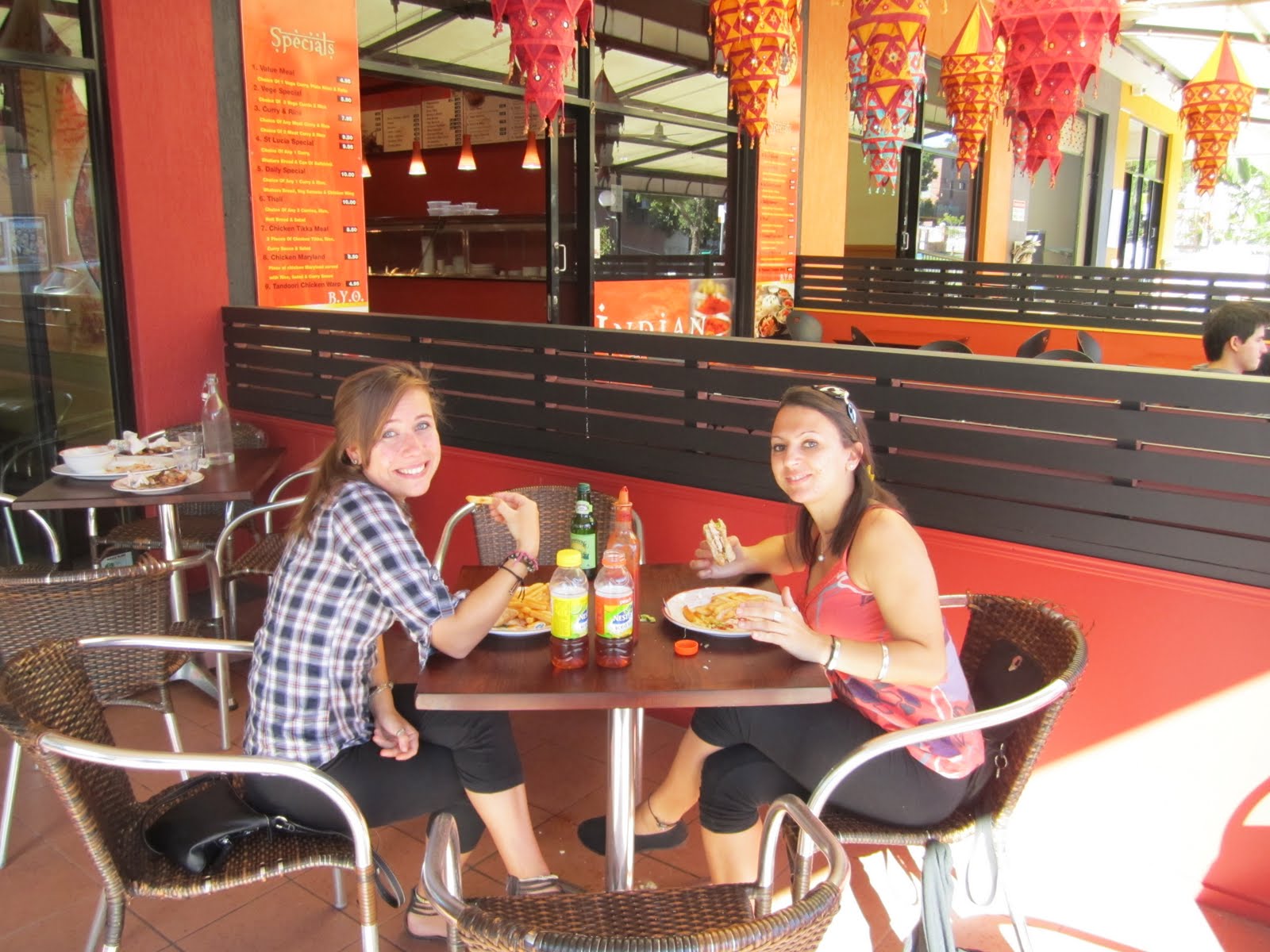 Emily and her friend Olivia (from Marseilles, France) eating at Nandos.