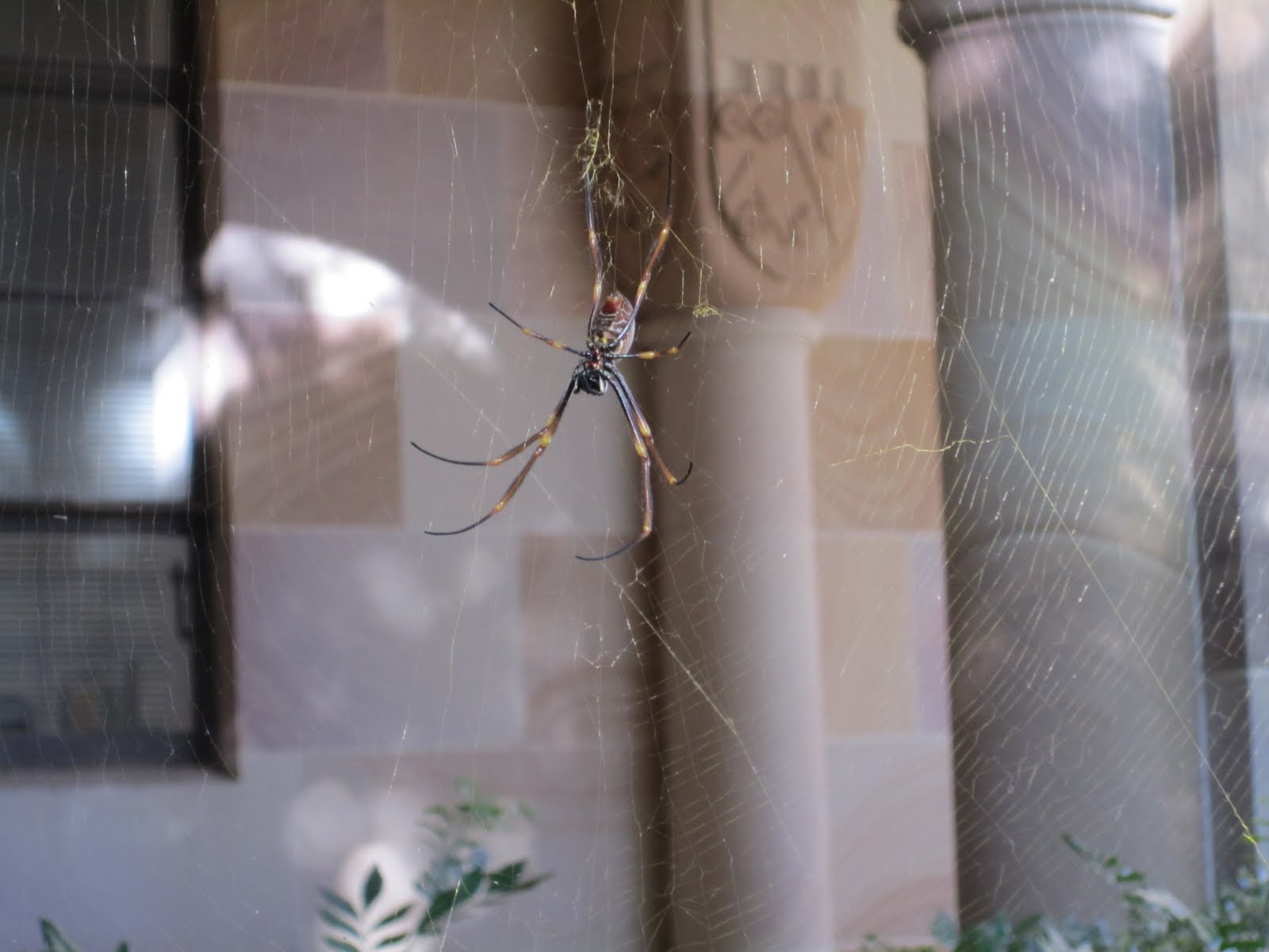 After lunch we walk to the St. Lucia campus of the University of Queensland. What a beautiful campus. The students call it "Uni". Turkeys, magpies... spiders?